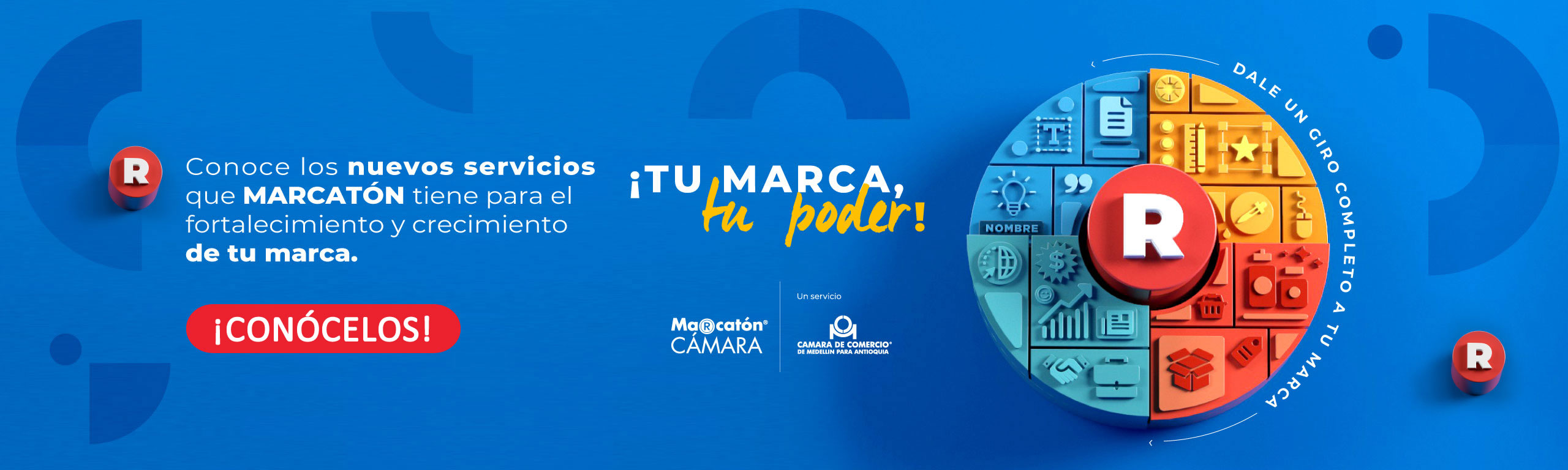 En la Cámara de Comercio de Medellín para Antioquia te acompañamos en el proceso de creación y/o fortalecimiento de tu marca, es por esto que te invitamos a conocer los nuevos servicios de MARCATÓN, los cuales son prestados por un equipo de expertos y son completamente personalizados y virtuales: conócelos y permítete llevar la marca e imagen de tu negocio a otro nivel.